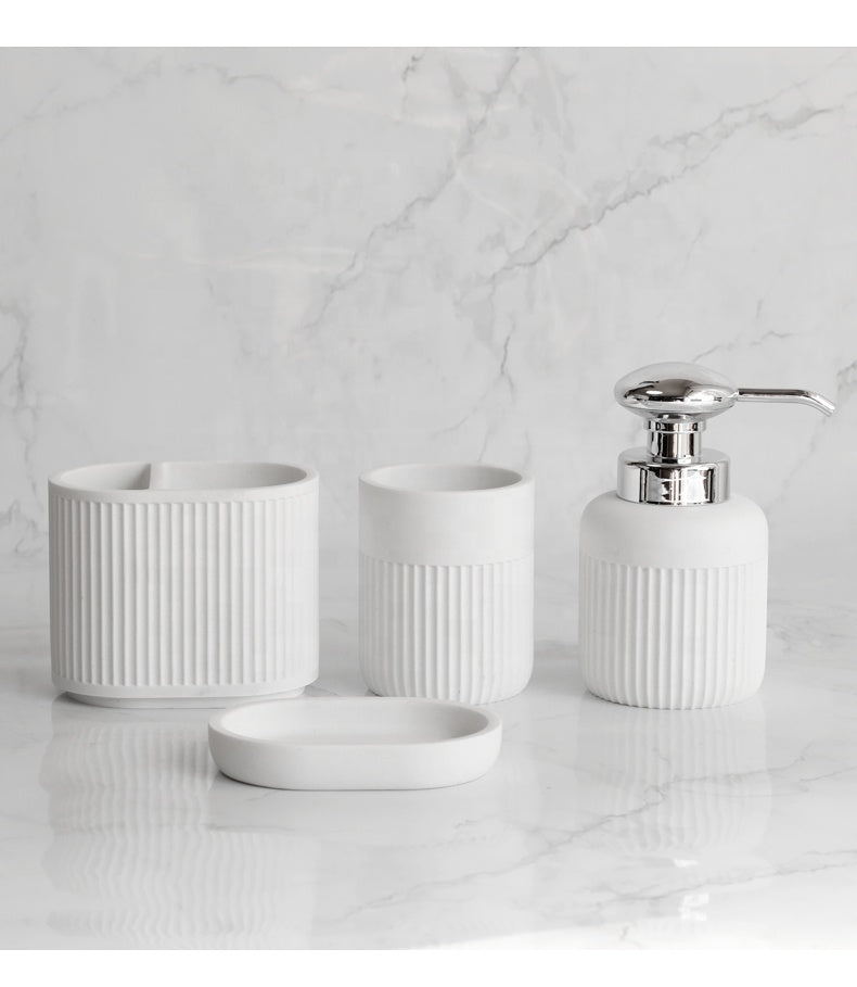 Современный набор для ванной из бежевого и белого песчаника