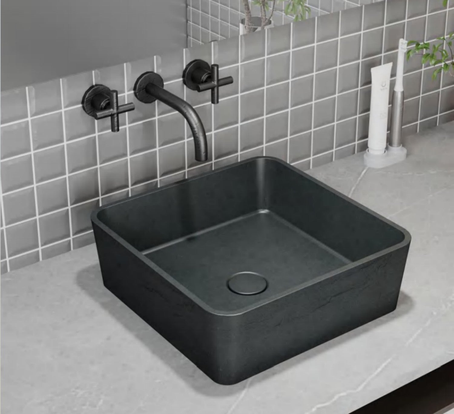 Бетонная раковина на столешнице