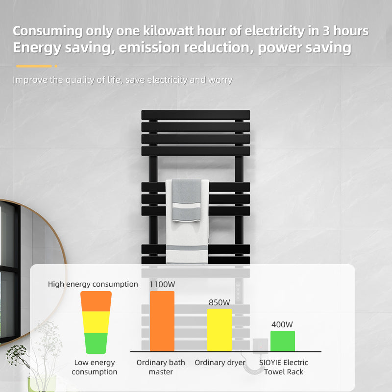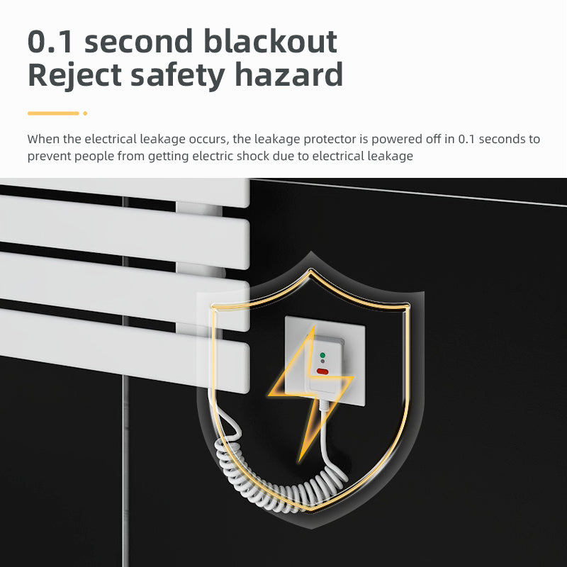Гарантия безопасности: поверхность вешалки для полотенец покрыта противоожоговой краской, которая может предотвратить ожоги и защитить вашу семью при использовании. Вилка имеет защиту от утечки: когда напряжение слишком велико, она автоматически отключит питание. поставка, так что вы можете использовать более непринужденно