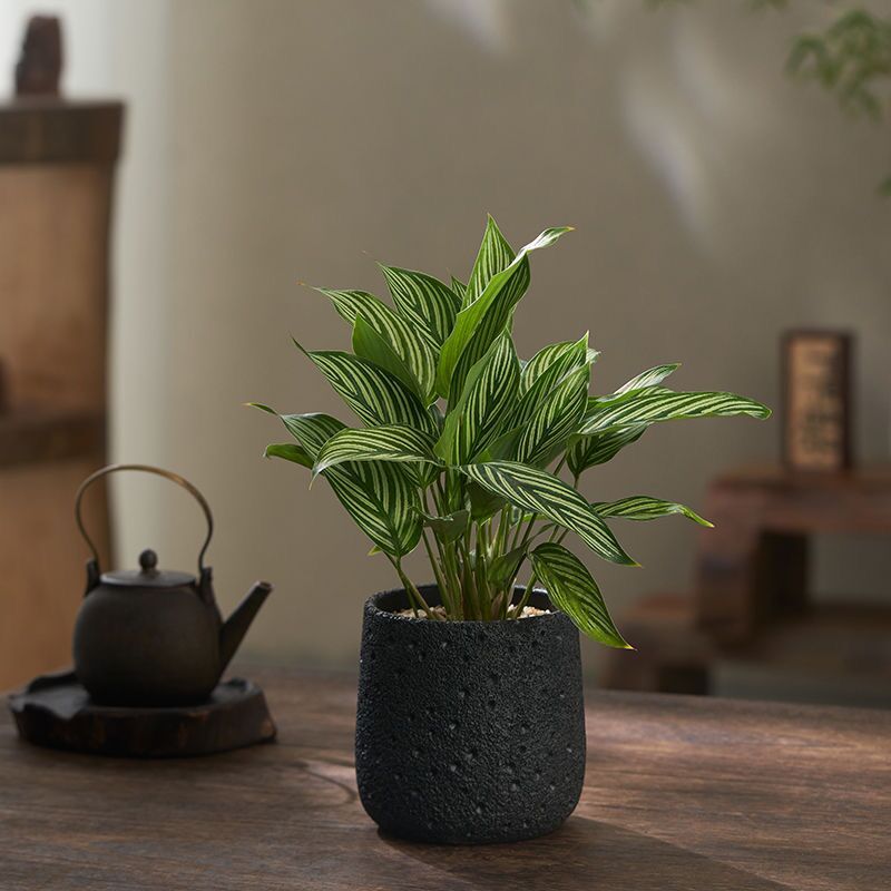 Минималистский цветочный горшок из вулканического камня и цемента